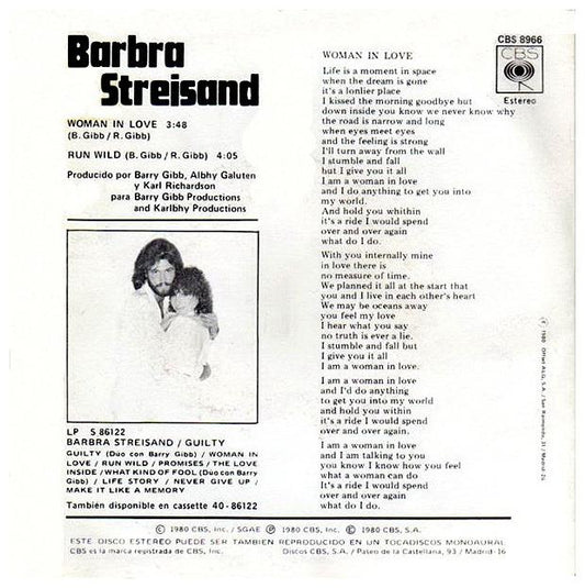 BARBRA STREISAND - WOMAN IN LOVE | 7" SINGLE VINILO USADO