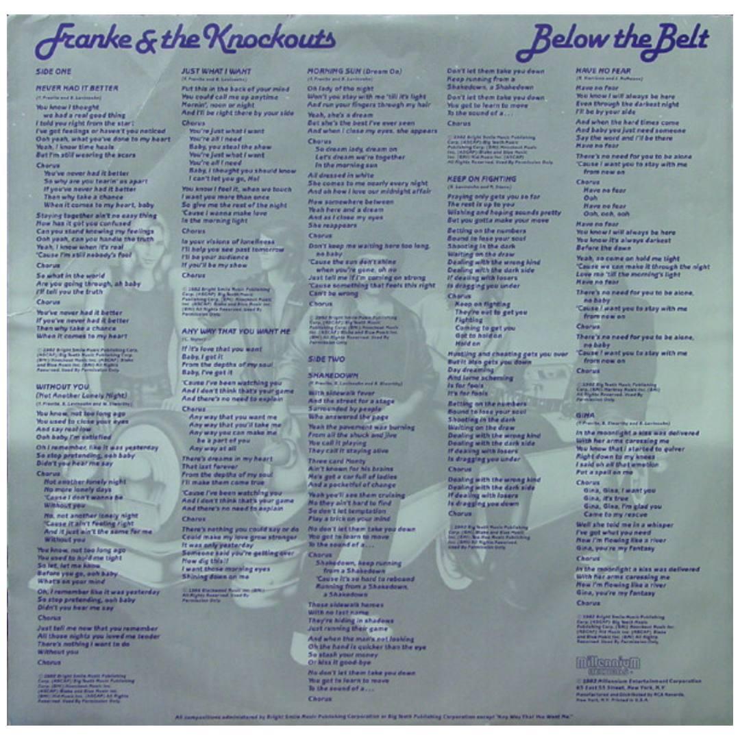 FRANKE & THE KNOCKOUTS - BELOW THE BELT | VINILO ORIGINAL DE EPOCA SELLADO / FRANKE & THE KNOCKOUTS - BELOW THE BELT | VINILO ORIGINAL DE EPOCA SELLADO / FRANKE & THE KNOCKOUTS - BELOW THE BELT | VINILO ORIGINAL DE EPOCA SELLADO