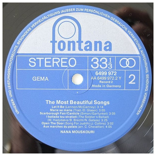 NANA MOUSKUORI - THE MOST BEAUTIFUL SONGS (2LP) - EDICIÓN ORIGINAL DE GERMANY DE 1974 - VINILO USADO EN EXCELENTES CONDICIONES (VG++)
