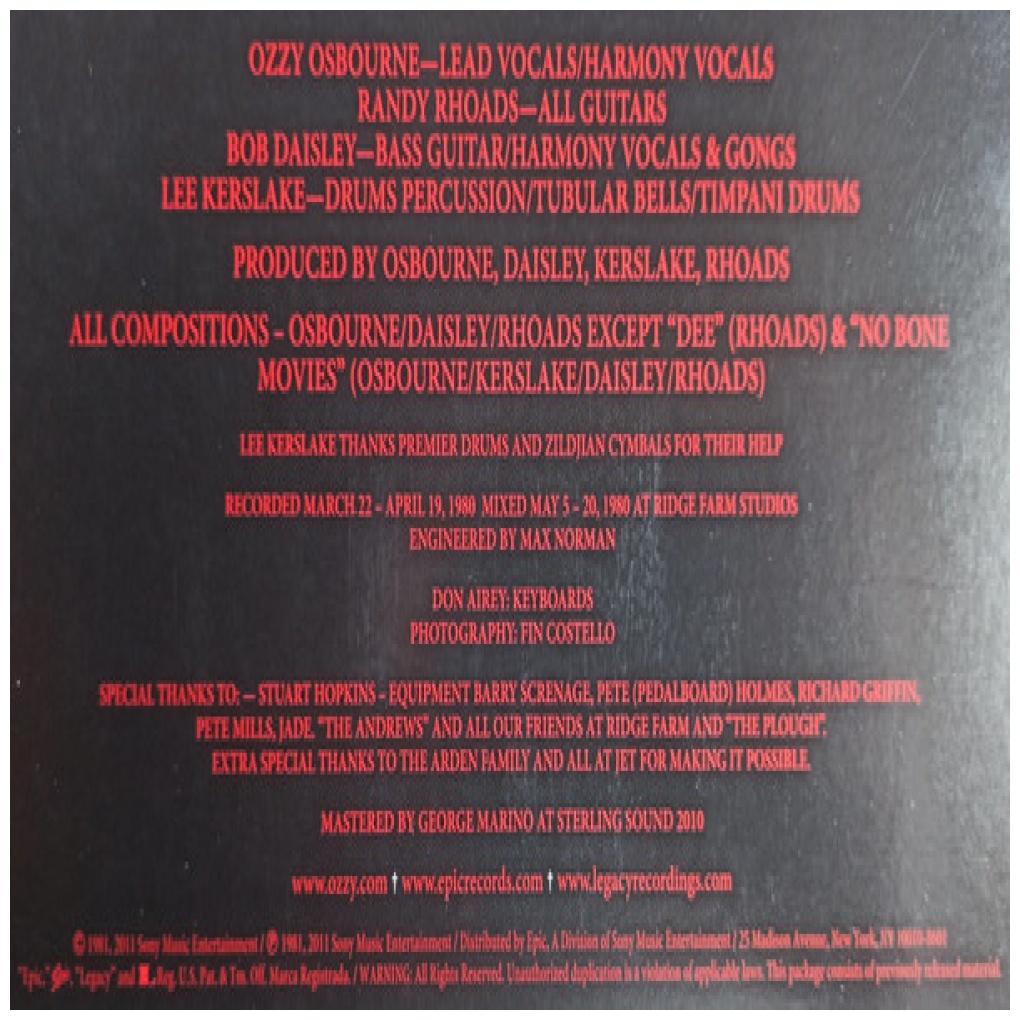 OZZY OSBOURNE - BLIZZARD OF OZZ (PICTURE DISC) | VINILO