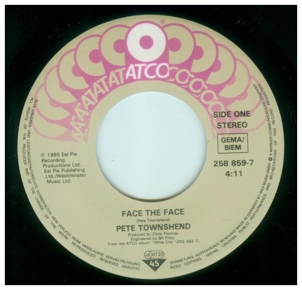 Pete Townshend - Face The Face - EDICION ORIGINAL DE EUROPE DE 1985 - VINILO USADO EN EXCELENTES CONDICIONES (VG++)